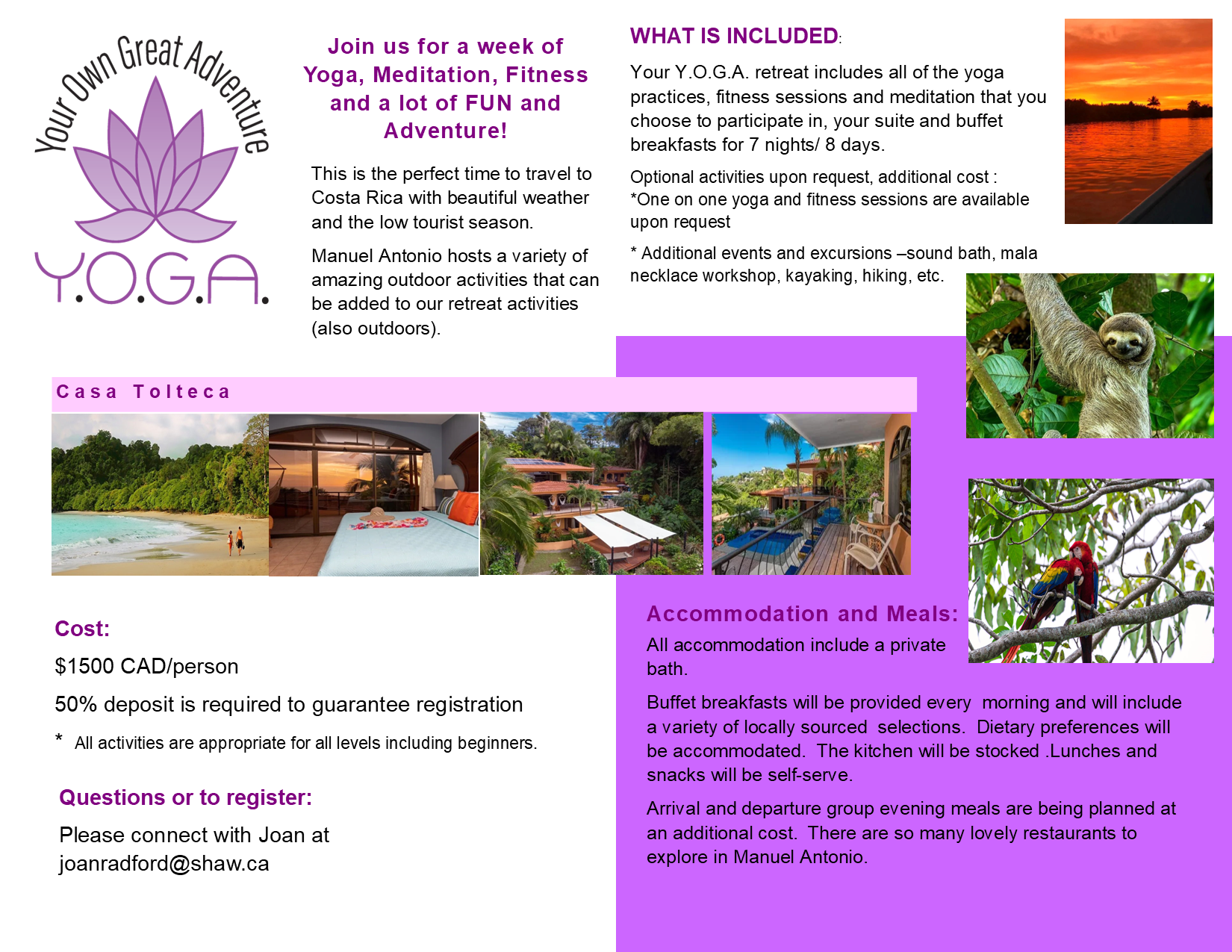 I would love to have you join me in Manuel Antonio for a great week of yoga, fitness, and meditation practice in the lovely Casa Tolteca.